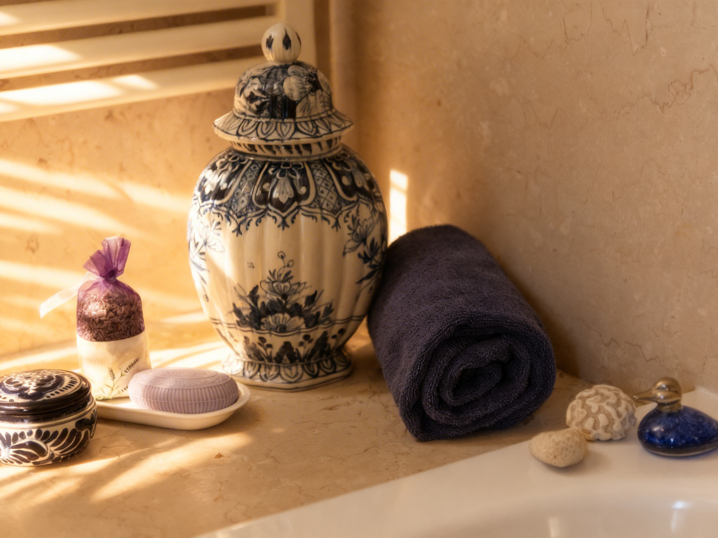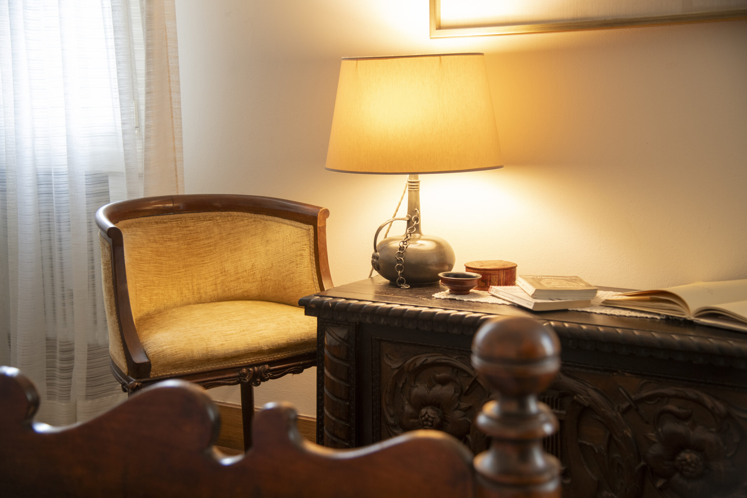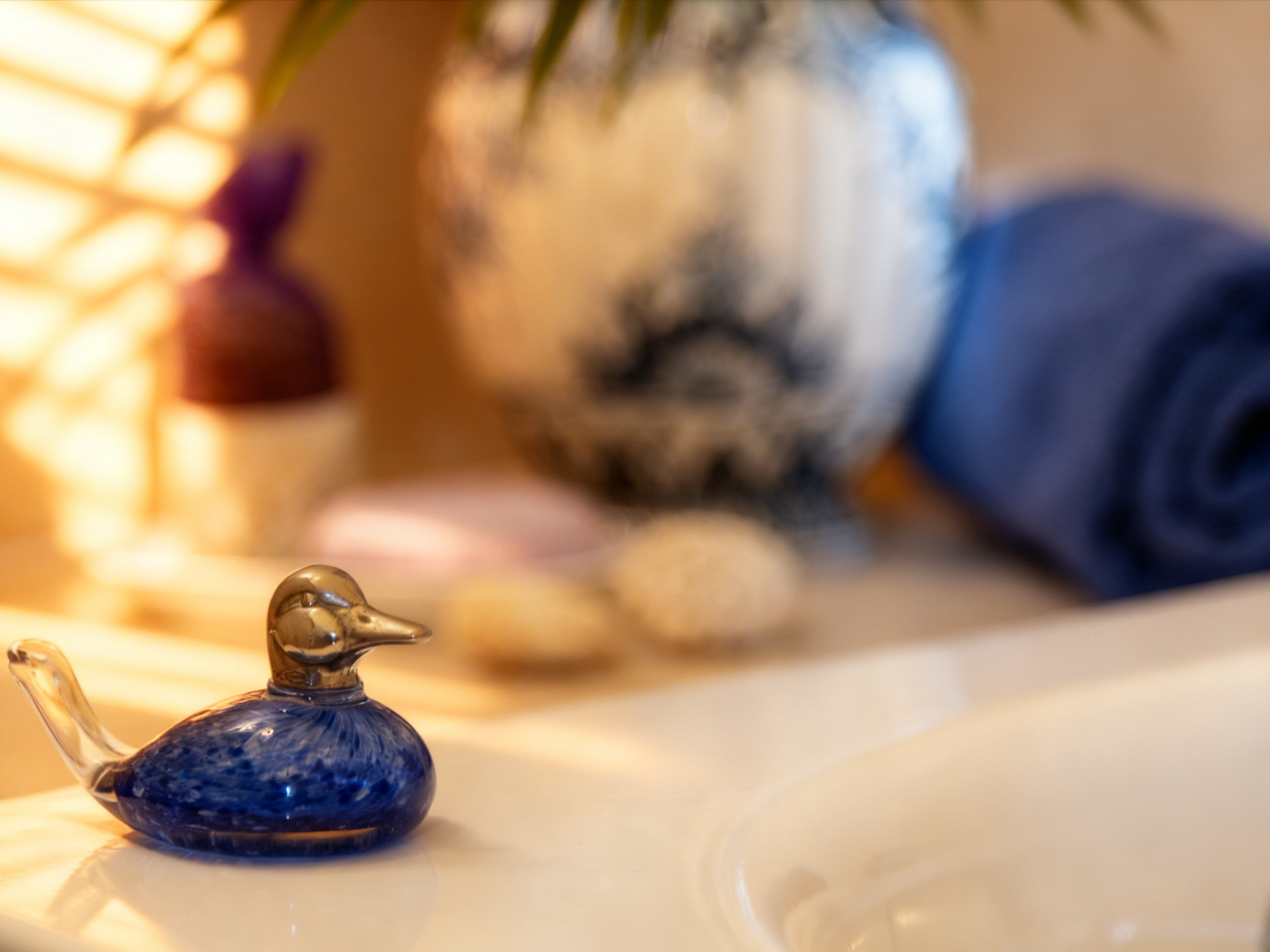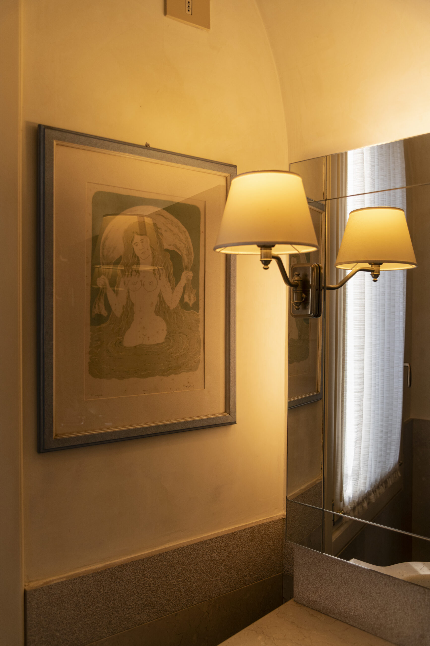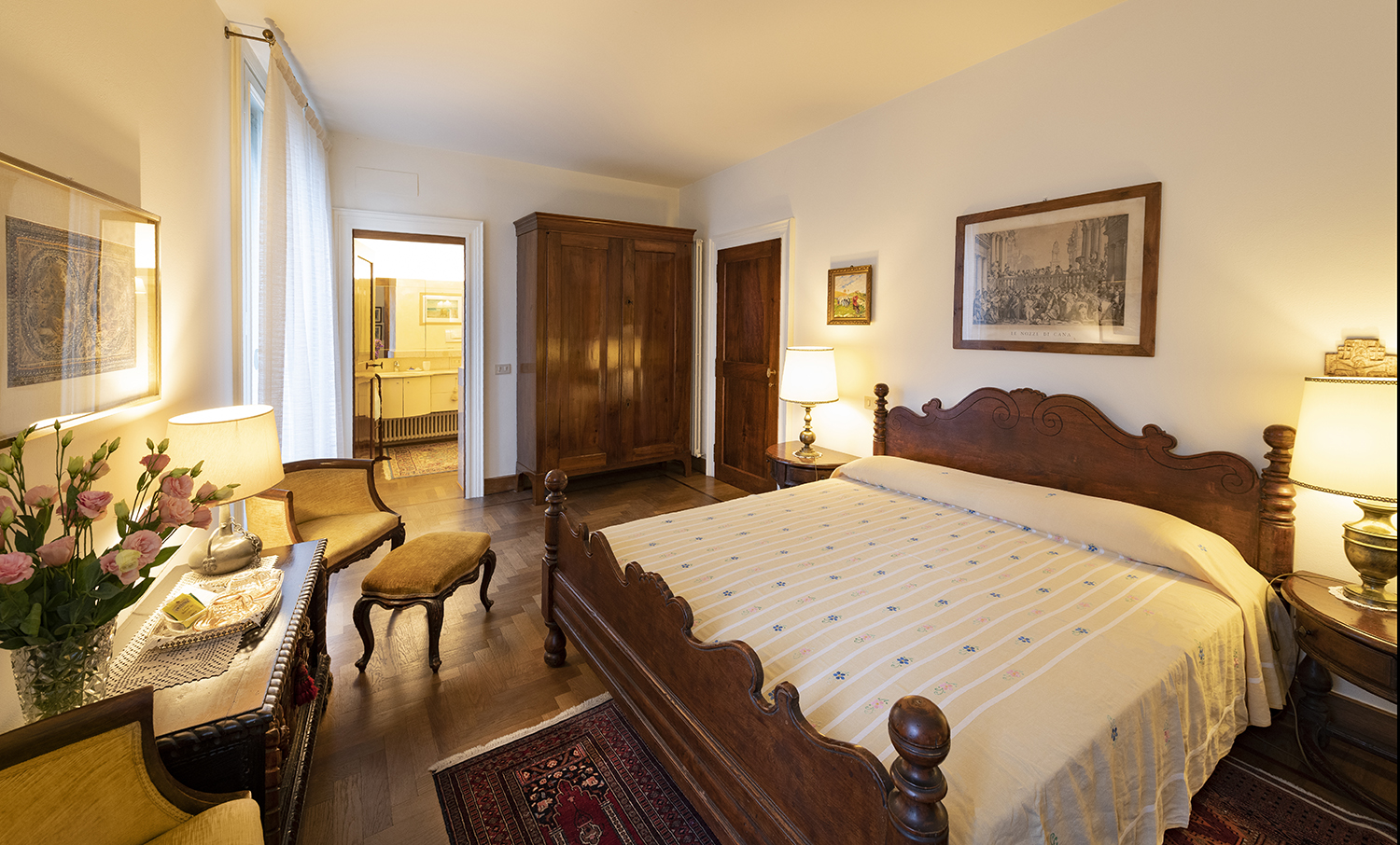 Il bagno, con accesso direttamente dalla camera, è provvisto di doccia, vasca, doppio lavabo e ha un’ampia finestra sempre sul fiume.