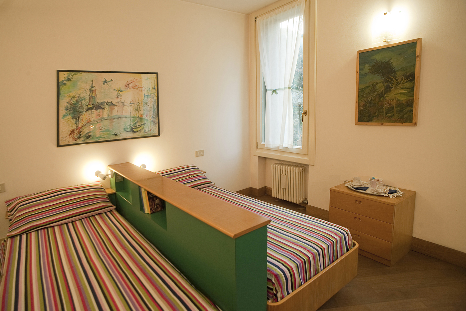 Oppure potete scegliere la camera verde con due letti singoli e bagno privato a fianco.